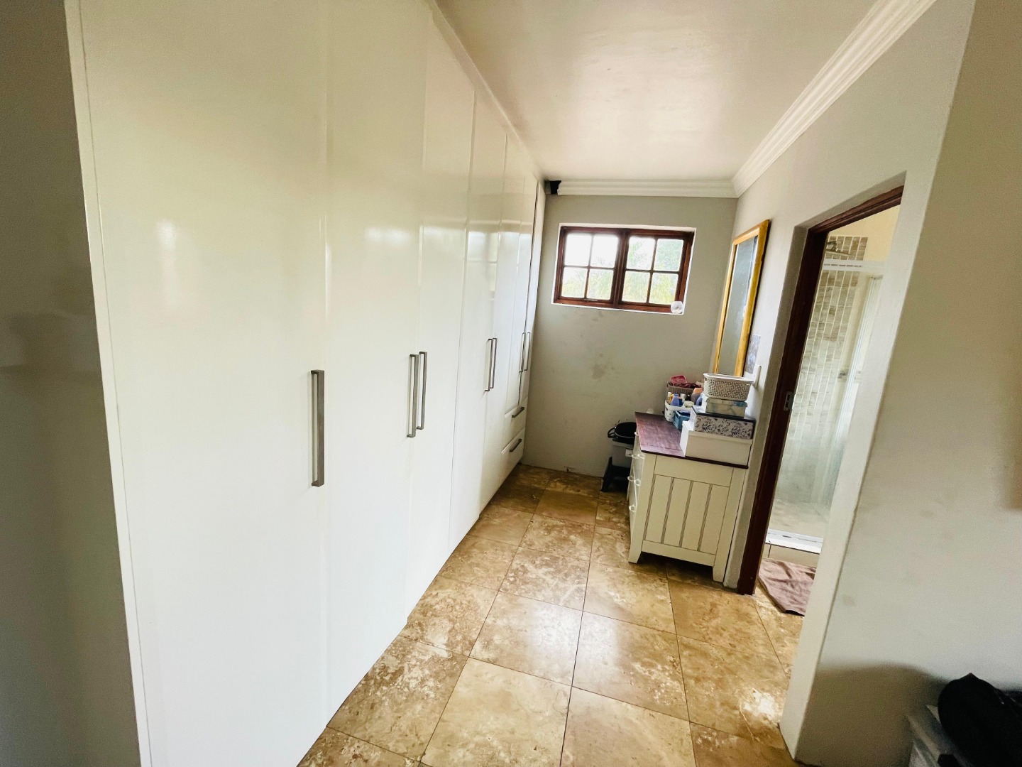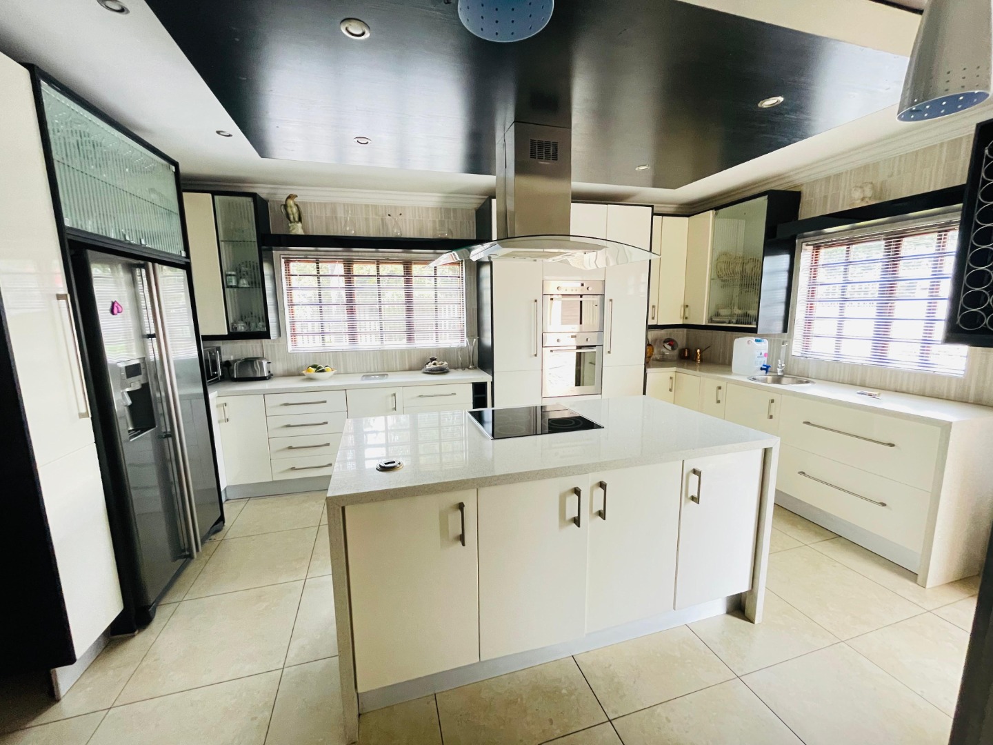 Accommodation includes five comfortable bedrooms and five-and-a-half bathrooms, ensuring privacy and convenience for all residents. Additionally, the property benefits from a dedicated flatlet, offering versatile options for extended family or potential rental income. Further practical amenities include staff quarters and dedicated storage space, enhancing the home's functionality.