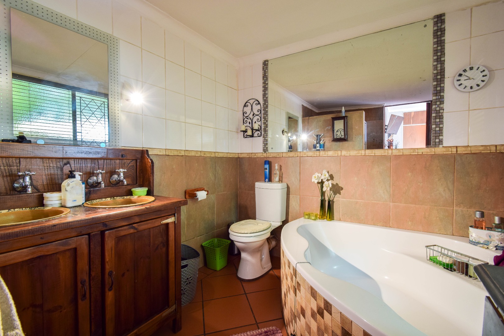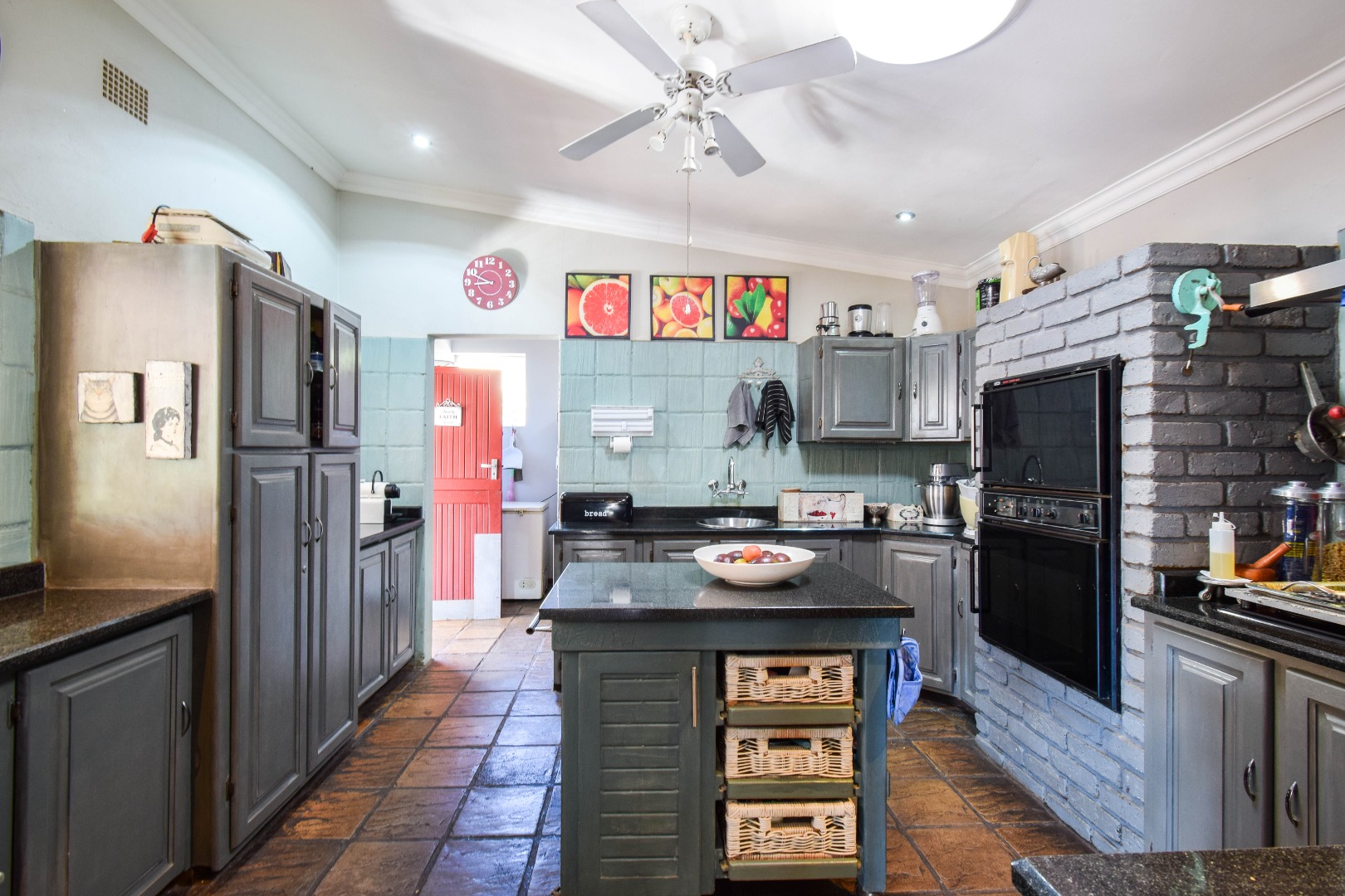 The main home boasts four generously proportioned bedrooms, all of them with built-in cupboard space and two and a half bathrooms, including a luxurious en-suite to the master bedroom. The beautifully appointed kitchen exudes warmth and style, complemented by a separate, fully equipped laundry area with ample space for all major appliances.