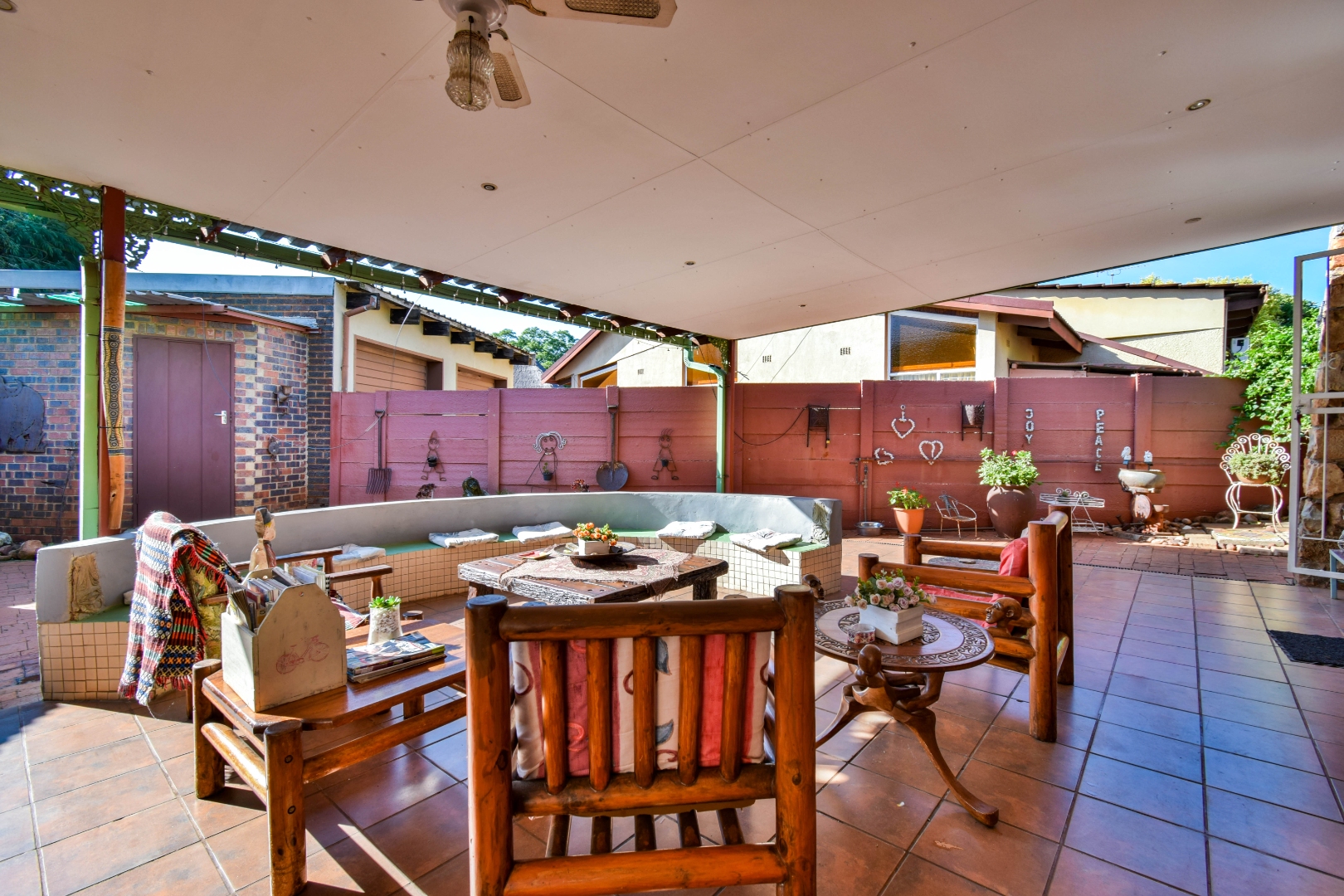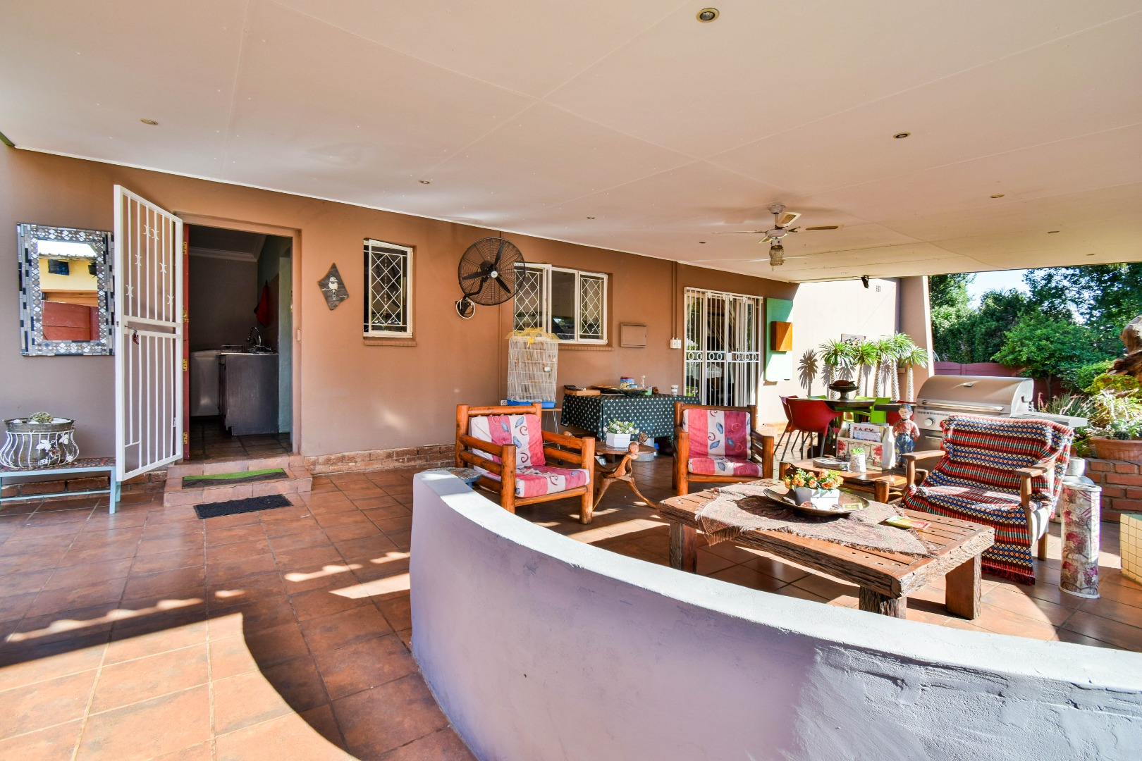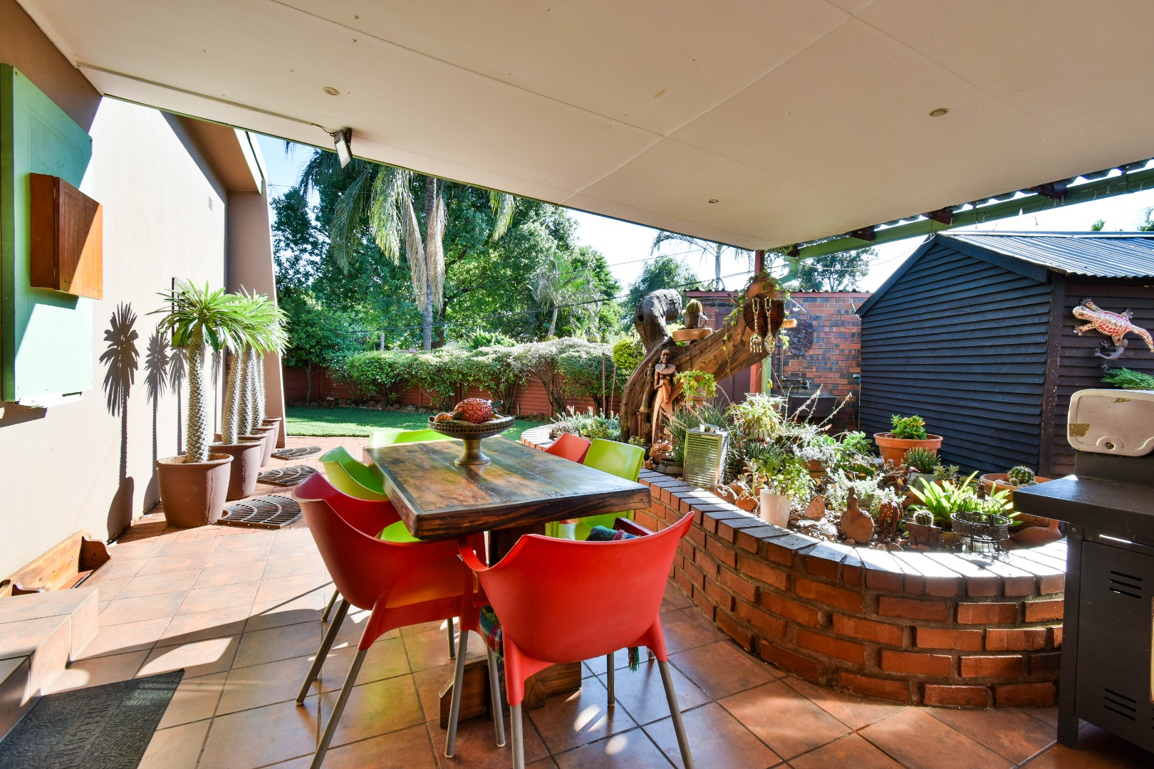 Step outside to a covered patio overlooking a lush, evergreen garden, where a dedicated boma area creates the perfect setting for entertaining under the stars. Additional outdoor features include a Wendy house, a JoJo tank for water efficiency, and a modern inverter system ensuring energy-conscious living.