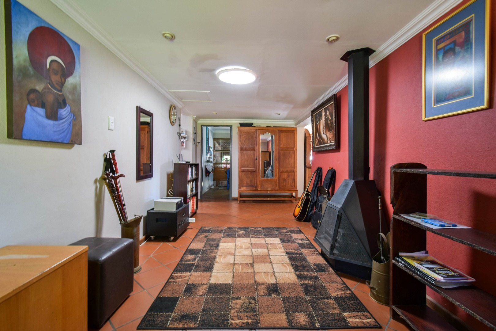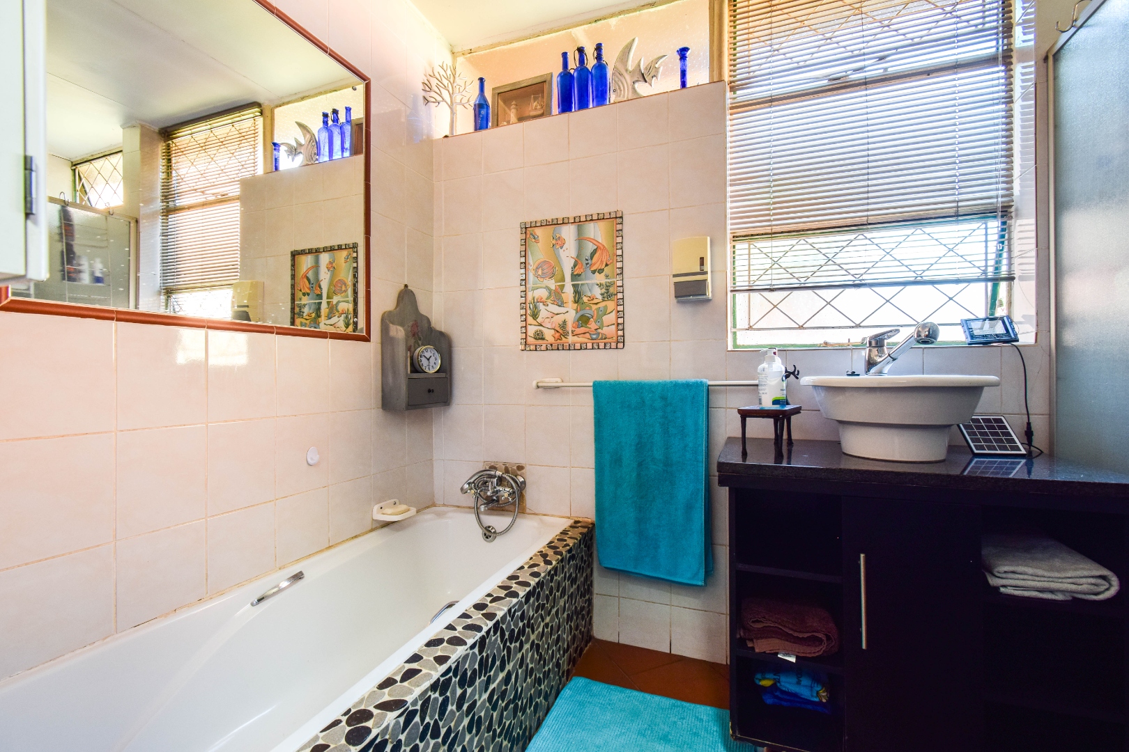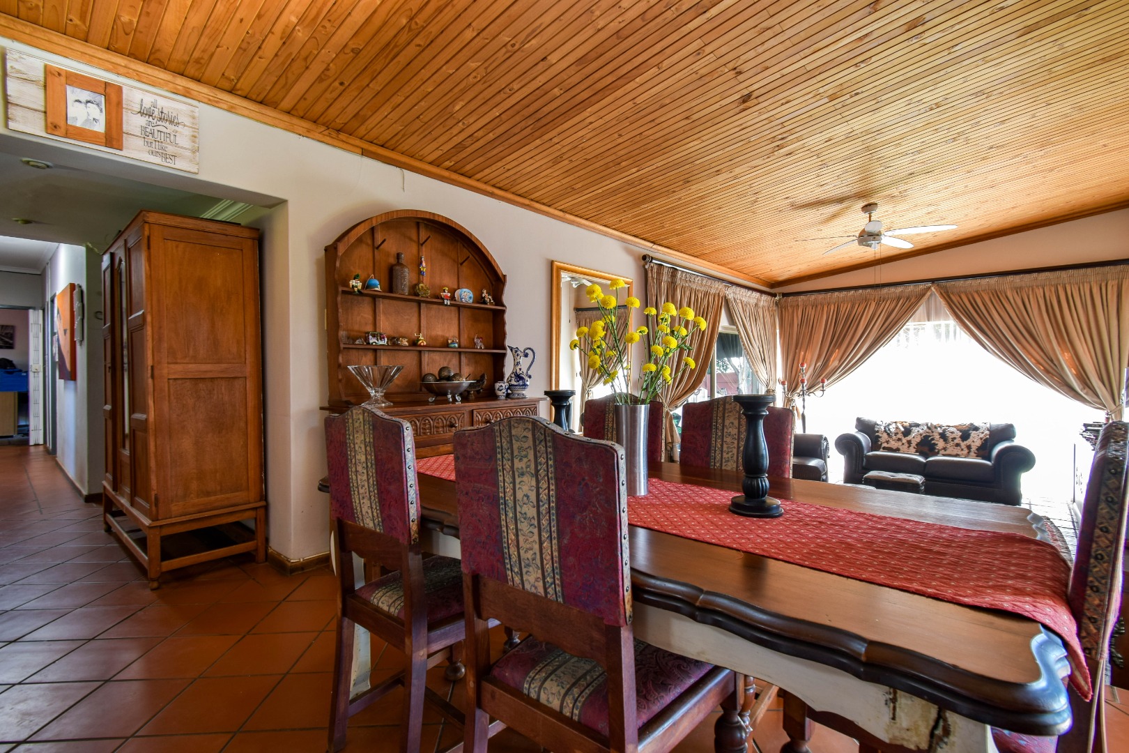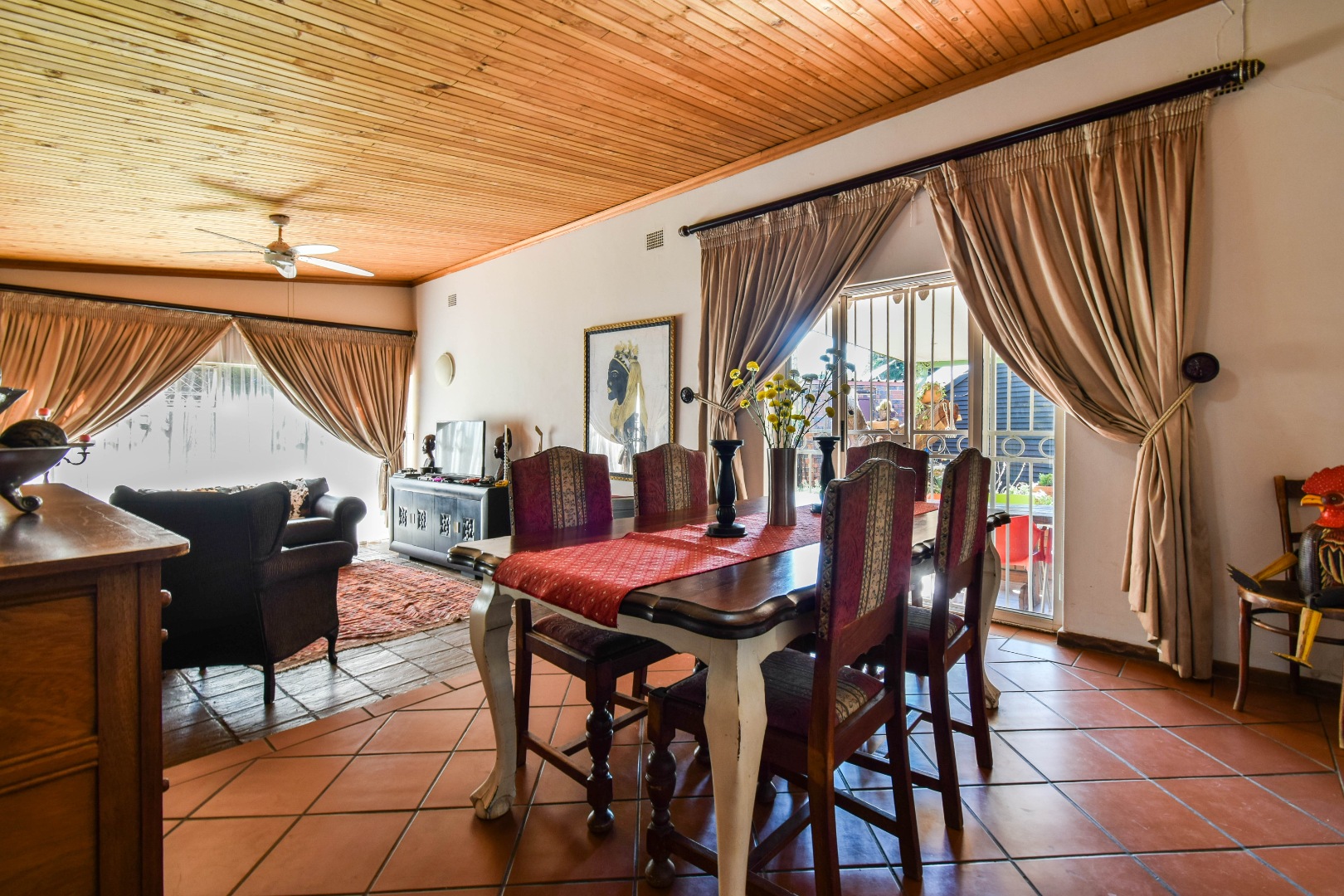 Step outside to a covered patio overlooking a lush, evergreen garden, where a dedicated boma area creates the perfect setting for entertaining under the stars. Additional outdoor features include a Wendy house, a JoJo tank for water efficiency, and a modern inverter system ensuring energy-conscious living.