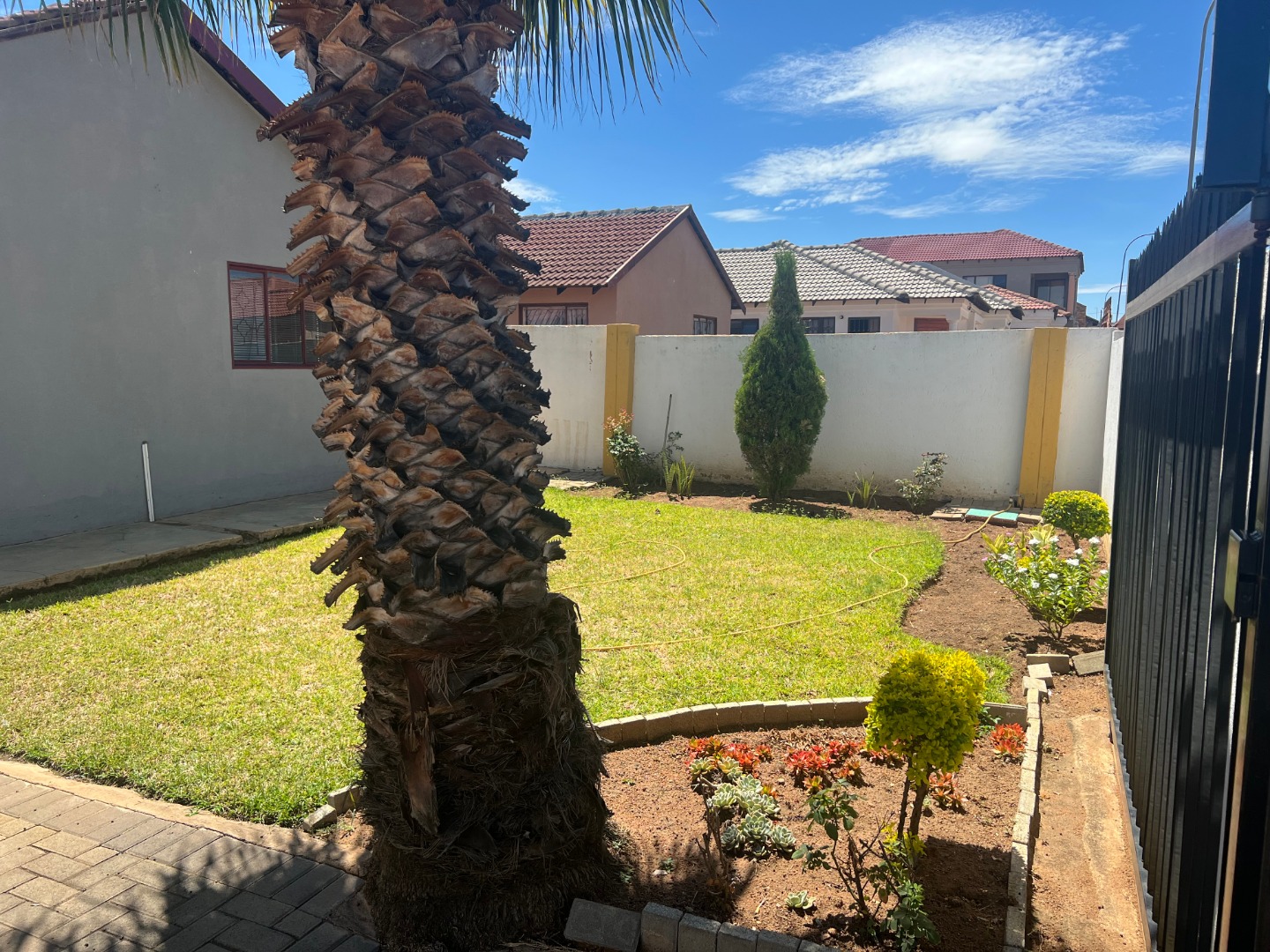 This property in Mabopane offers a practical and secure living environment, beginning with a well-maintained frontage featuring a secure black metal gate and a clean white boundary wall. The paved front yard provides ample off-street parking for up to eight vehicles, complemented by a convenient carport that offers covered parking. The exterior of the single-story home presents a grey facade with a red tiled roof, enhanced by security bars on the windows for added peace of mind. Inside, the residence comprises two comfortable bedrooms and two bathrooms, alongside a dedicated lounge area and a functional kitchen. While some interior spaces, particularly the bathrooms, exhibit a basic and utilitarian finish, they offer a blank canvas for new owners to infuse their personal style and undertake future renovations to suit their preferences. Outdoor living is well-catered for on the 260 sqm erf. The backyard boasts a lush green lawn, established garden beds with varied plantings, and a prominent palm tree, creating a private and sunny retreat. Extensive paving throughout the property ensures low maintenance, while a separate storage shed and outside toilets add practical utility. This pet-friendly home is ideal for those seeking a functional outdoor space. Located in the suburban area of Mabopane, this property provides a tranquil setting within a residential community. It offers convenient access to local amenities and services, making it a suitable choice for families or individuals seeking a well-connected yet peaceful home. Key Features: * 2 Bedrooms, 2 Bathrooms * 1 Lounge, 1 Kitchen * Paved Driveway with Carport * Ample Parking for 8 Vehicles * 260 sqm Erf Size * Secure Frontage with Gate and Wall * Established Garden and Lawn * Storage Shed and Outside Toilets * Pet-Friendly