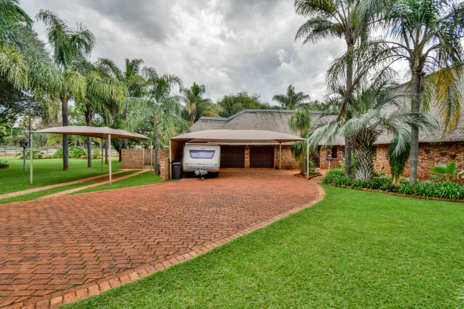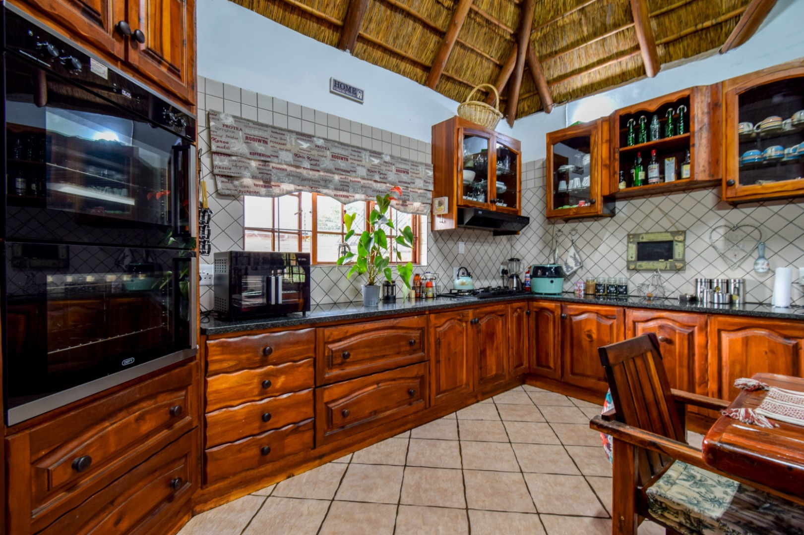 Outdoor living is a highlight, with a charming lapa, a built-in braai and bar, and a boma, creating perfect settings for entertaining. The inviting swimming pool and well-maintained garden, supported by an irrigation system and borehole, offer a private oasis. Parking is abundant with two garages and four carports. The property is further enhanced by a solar geyser, JoJo tanks, and gas installation, promoting efficiency. Located within a security estate, residents benefit from excellent 24-hour security, electric fencing, an alarm system, beams, and secure access, ensuring peace of mind. Generator ready room. Pets are also welcome.