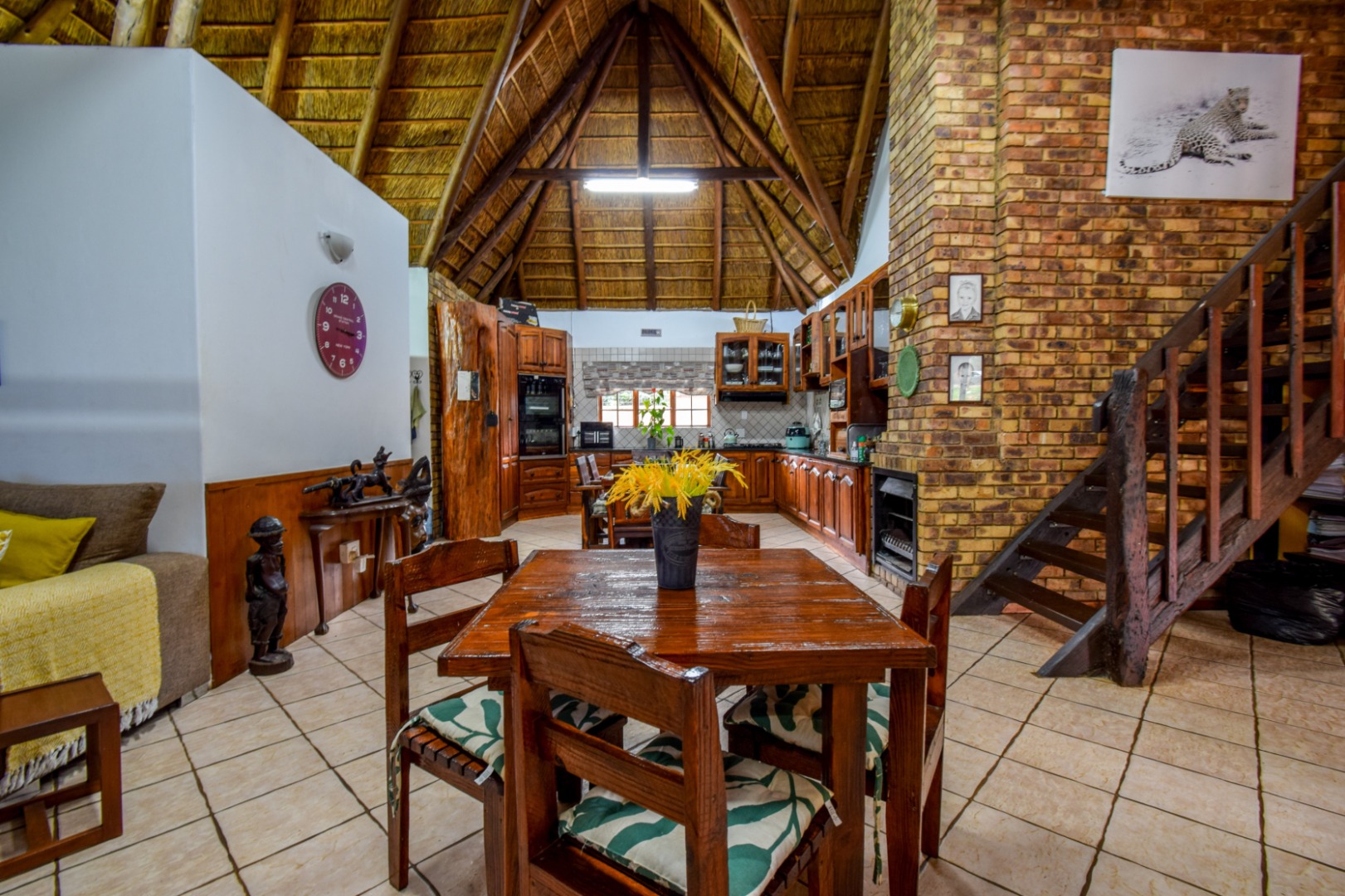The interior boasts multiple living areas designed for both relaxation and entertaining, including a comfortable lounge, a dedicated family TV room, and a dining room, all benefiting from an open-plan layout with a fireplace. The well-appointed kitchen includes a gas hob, a pantry and a separate laundry/scullery area, catering to all culinary needs. Additional versatile spaces such as a study/loft and a store room enhance the home's practicality. A significant advantage is the separate one-bedroom flatlet, providing ideal accommodation for extended family or guests.