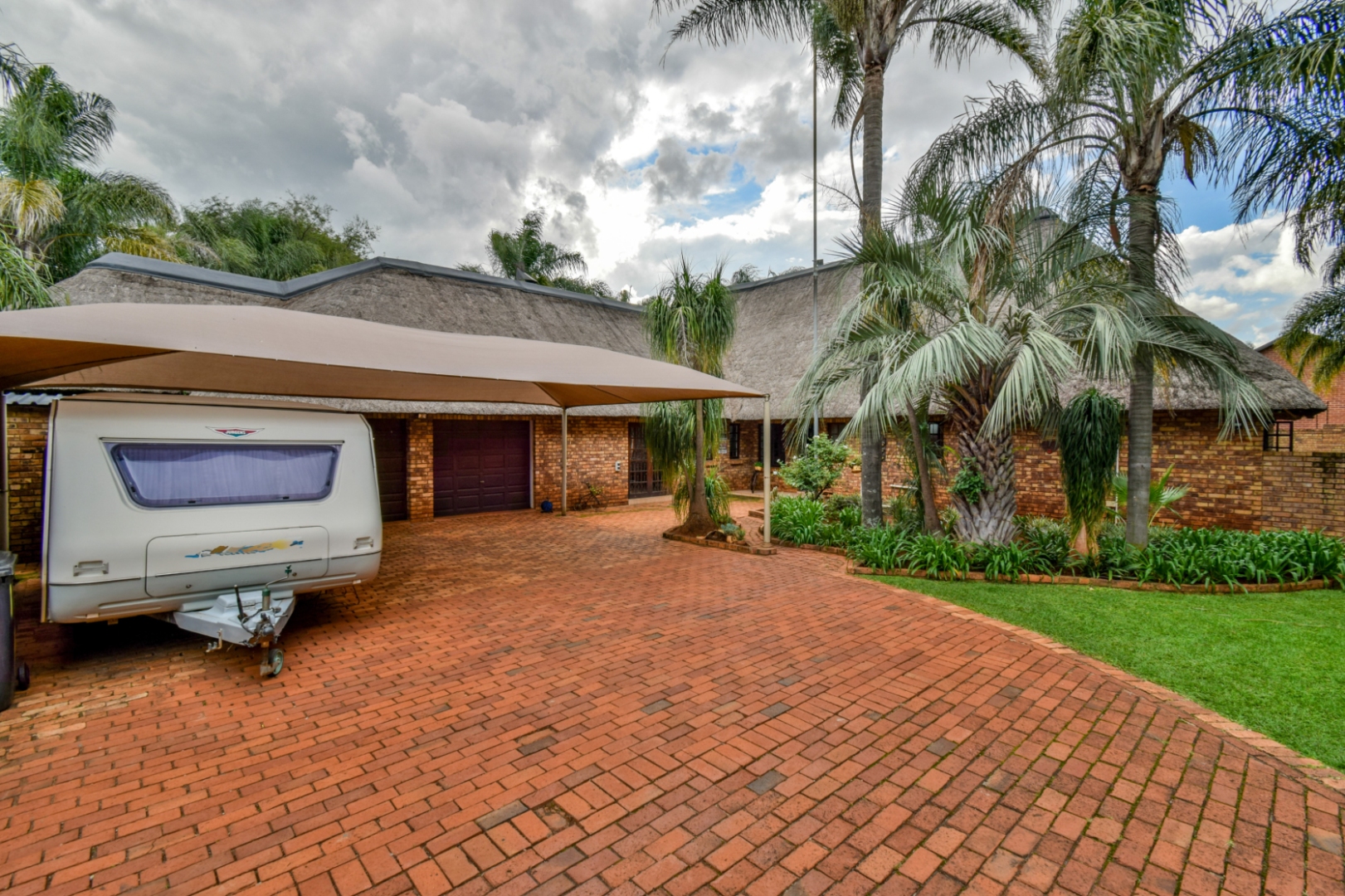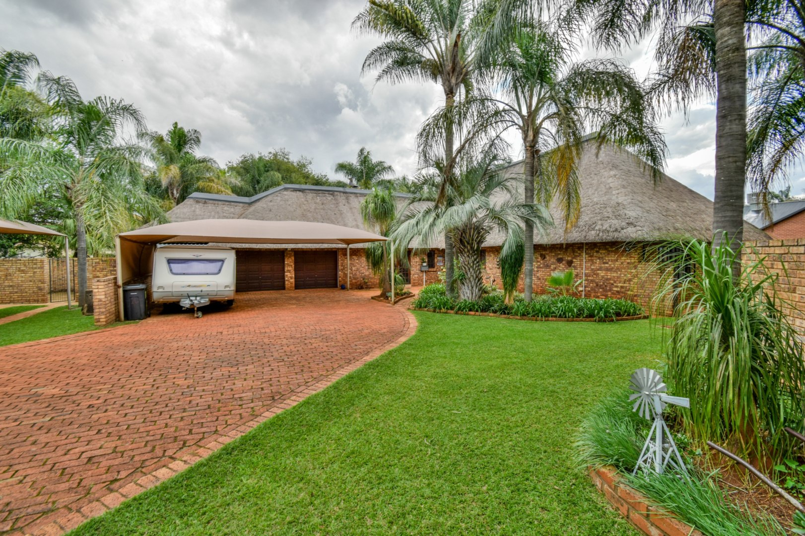 Outdoor living is a highlight, with a charming lapa, a built-in braai and bar, and a boma, creating perfect settings for entertaining. The inviting swimming pool and well-maintained garden, supported by an irrigation system and borehole, offer a private oasis. Parking is abundant with two garages and four carports. The property is further enhanced by a solar geyser, JoJo tanks, and gas installation, promoting efficiency. Located within a security estate, residents benefit from excellent 24-hour security, electric fencing, an alarm system, beams, and secure access, ensuring peace of mind. Generator ready room. Pets are also welcome.