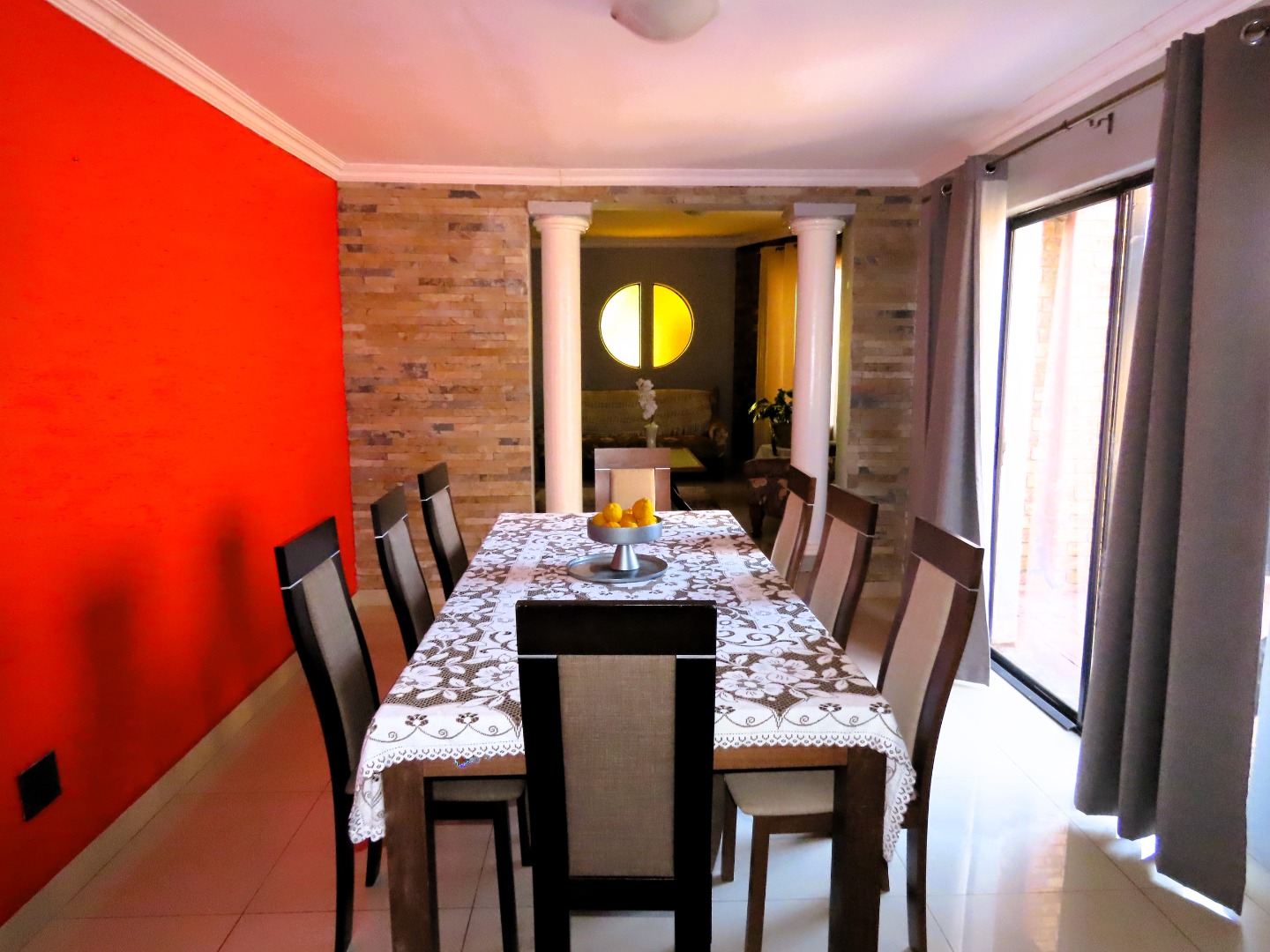 This neat face brick home features 3 bedrooms, 2 bathrooms (including an en-suite in the main bedroom), a spacious lounge and dining area, and a kitchen with ample cupboard space, melamine tops, and a 4-plate cable stove with oven.
