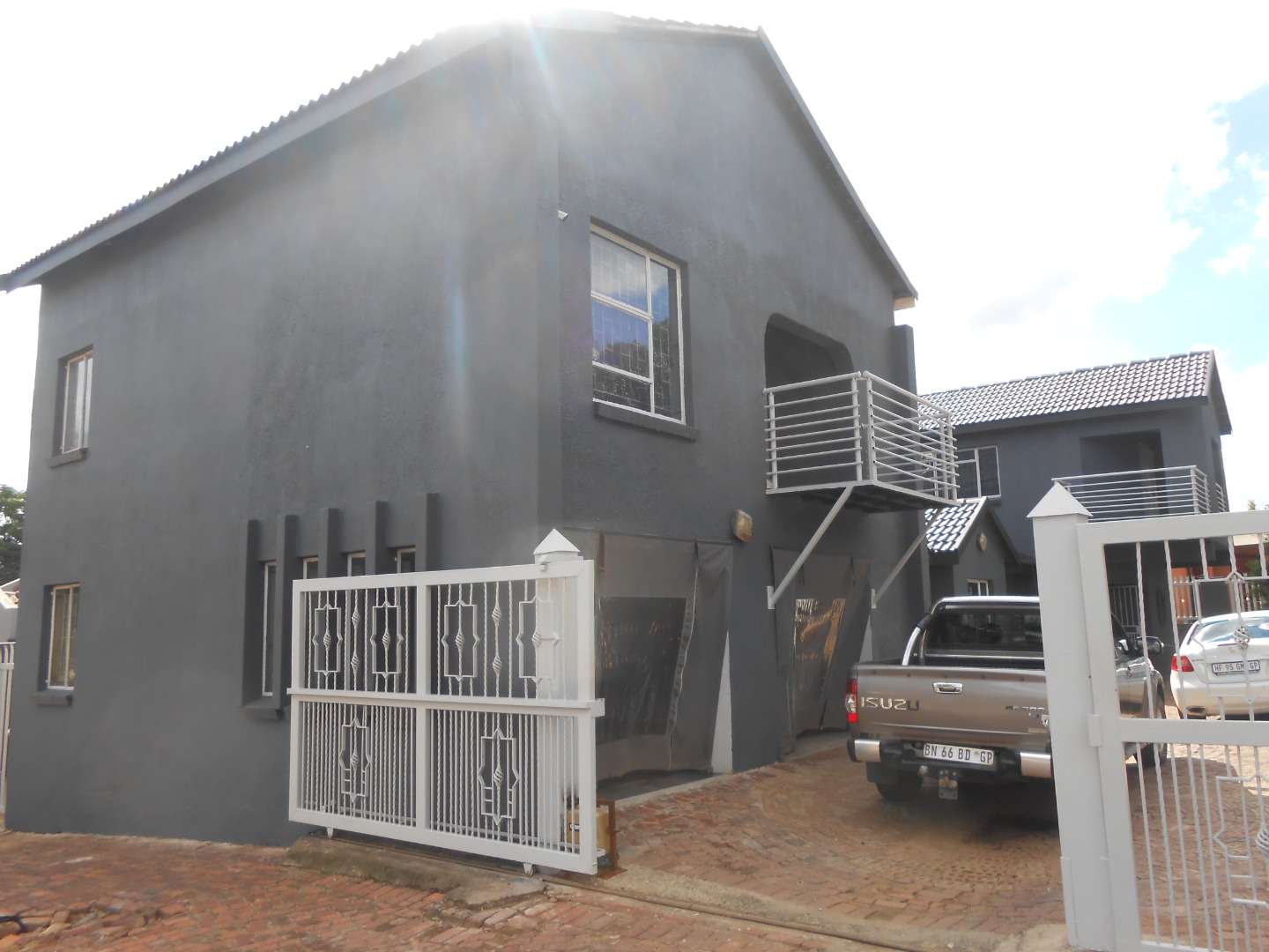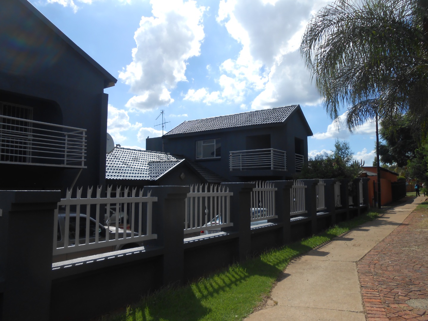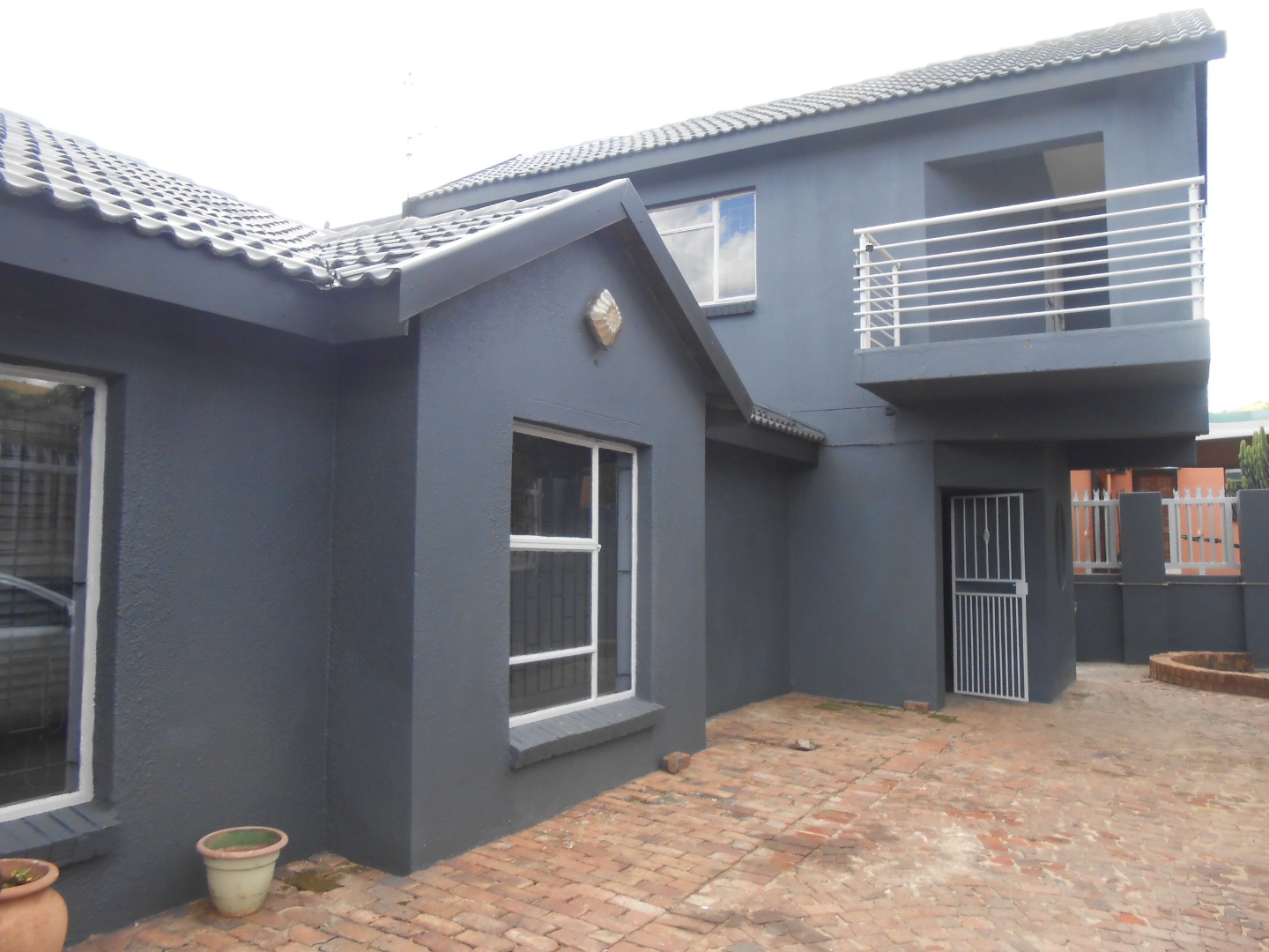 Discover this spacious and modern residential rental property located in the well-established suburban area of Eersterust, Pretoria. This multi-story home presents a striking contemporary aesthetic with its dark grey exterior, complemented by crisp white accents and multiple balconies that offer inviting outdoor living spaces. The property boasts a well-maintained appearance, featuring a paved driveway and secure access gate, ensuring both curb appeal and convenience. Step inside to find a generously proportioned interior spanning 257 sqm, designed for comfortable family living. The home features five bedrooms and three bathrooms, including a private en-suite, providing ample accommodation. The living areas are characterized by neutral light grey walls and durable tiled flooring throughout, offering a versatile canvas for personal decor. The modern kitchen is a highlight, equipped with sleek white cabinets, stone-look countertops, and a built-in oven/stove, catering to all culinary needs. A dedicated dining room and a comfortable lounge area complete the main living spaces, while a unique exposed brick staircase adds character. With its substantial floor size and five bedrooms, this property is ideally suited for a large family seeking a secure and spacious home. Residents will appreciate the robust security features, including high perimeter walls, spiked fencing, security gates, and window bars, providing peace of mind. The double garage offers secure parking for vehicles. Eersterust is a suburban community in Pretoria, offering a convenient location for residents. Key Features: * 5 Bedrooms, 3 Bathrooms (1 En-suite) * Modern Kitchen with Built-in Oven/Stove * Multiple Balconies * Secure Perimeter with Spiked Fencing & Access Gate * Double Garage * Tiled Flooring & Neutral Interiors * Dedicated Lounge and Dining Room * Paved Driveway