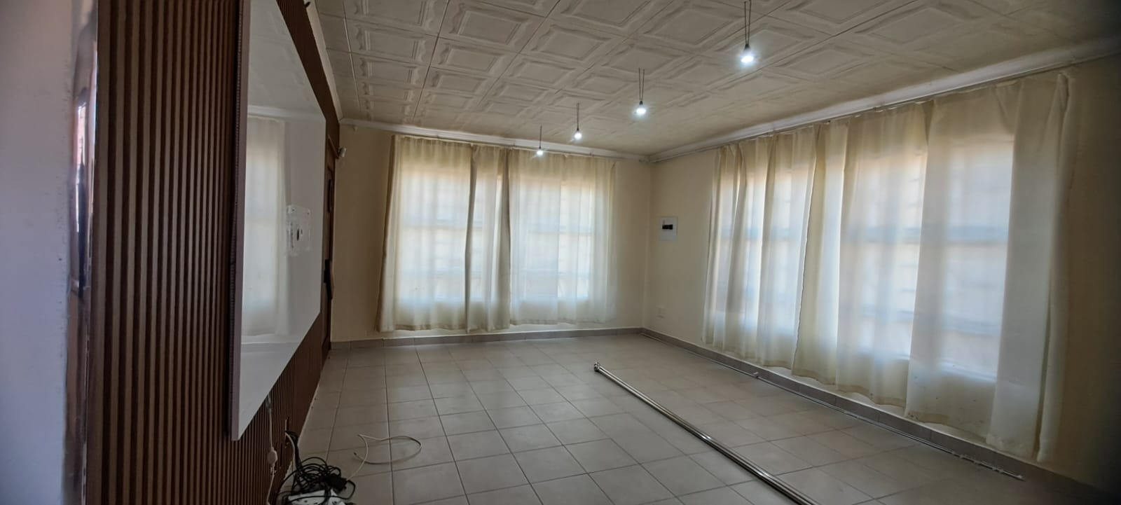 Step inside to find a cozy lounge, bathed in natural light, creating an inviting atmosphere for relaxation or entertaining guests. The kitchen features modern touches, ensuring a functional and pleasant cooking experience. Tiled flooring throughout the home contributes to a clean and contemporary aesthetic, complemented by neat finishes in every room.