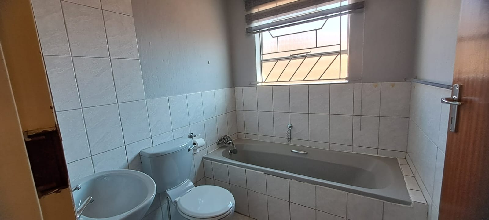 The house comprises two spacious bedrooms, one of which includes its own private en-suite bathroom, offering added convenience and privacy. In total, the property benefits from two well-appointed bathrooms. Security is enhanced with burglar bars and secure parking, including a dedicated garage, providing peace of mind. Prepaid electricity adds to the ease of managing household expenses.
