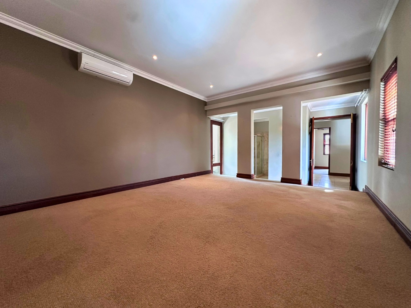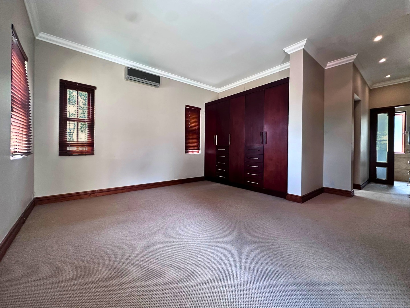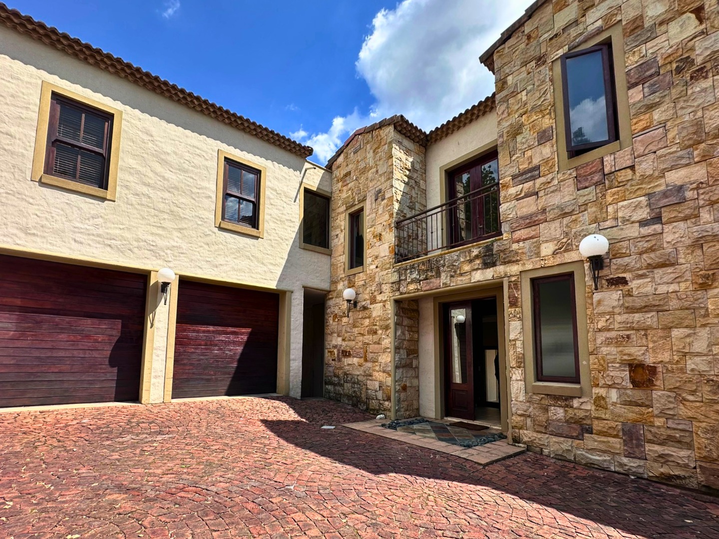 Upstairs, the home offers four well-sized bedrooms and a strong focus on comfort. There are two generous main-style bedrooms, each with its own en-suite bathroom, while one also enjoys a walk-in closet and access to a balcony with lovely views. The remaining two bedrooms have built-in cupboards, open onto a balcony, and share a bathroom with a shower over the bath.